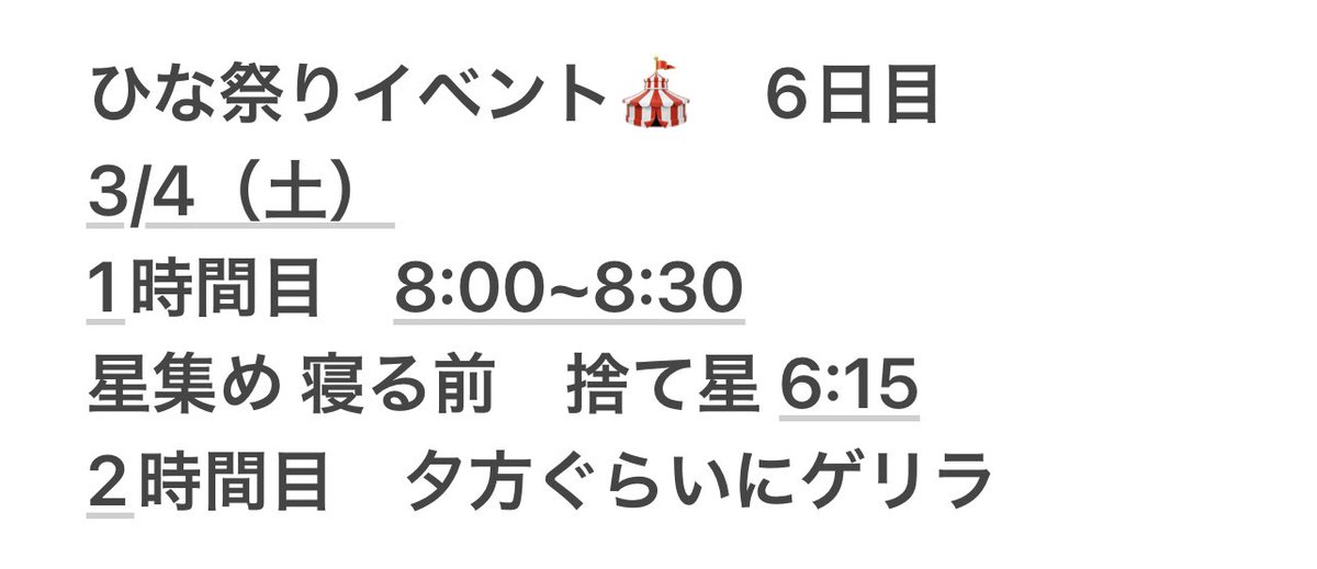 明日はママのお仕事のお手伝いと従姉妹たちとひな祭りパーティーするのであまり配信できないかもだけど待ってます🎉
