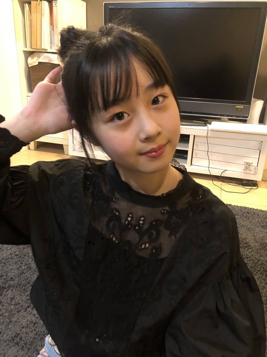 今日はちょっとあついから、お団子頭にしてみたよ〜💫