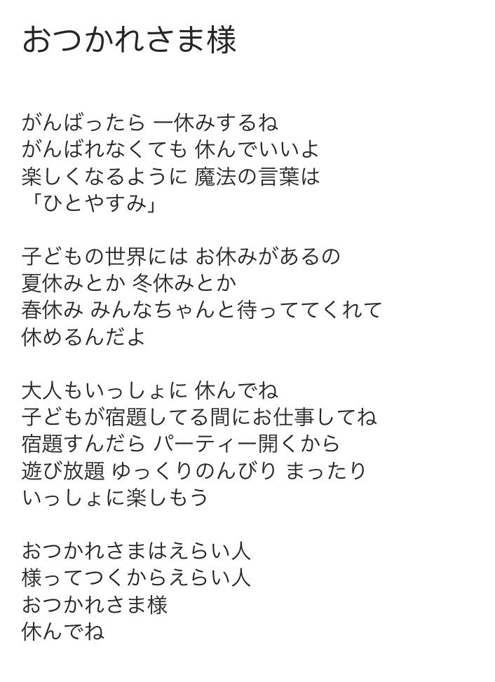 『おつかれさま様』だぞ!作詞と作曲もがんばった_:(´ཀ`」 ∠):