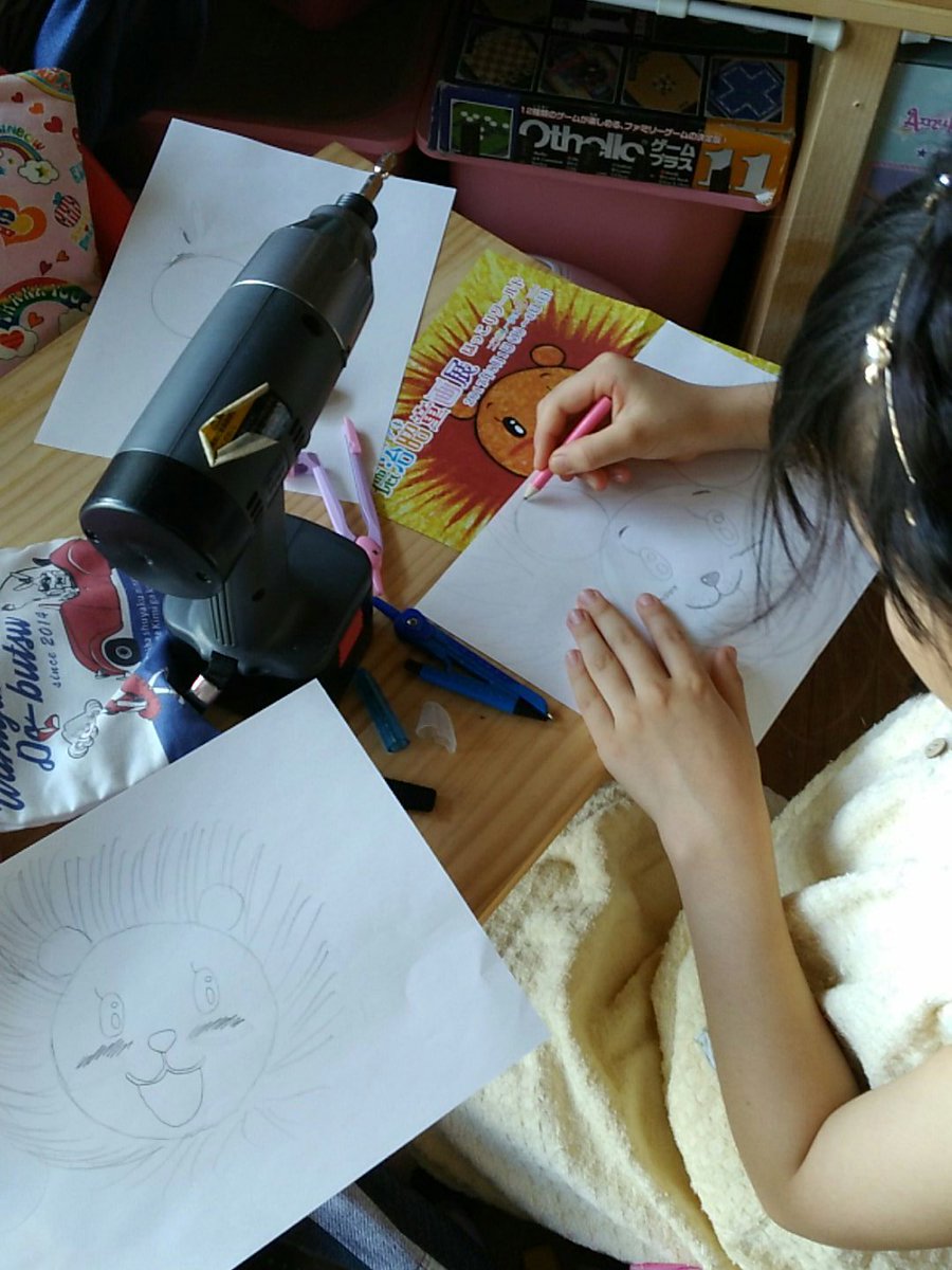 と思ったら、散らかり放題の部屋のなかで、ひたすら #らいおんサン の絵を描いていた!Σ( ̄□ ̄;)
