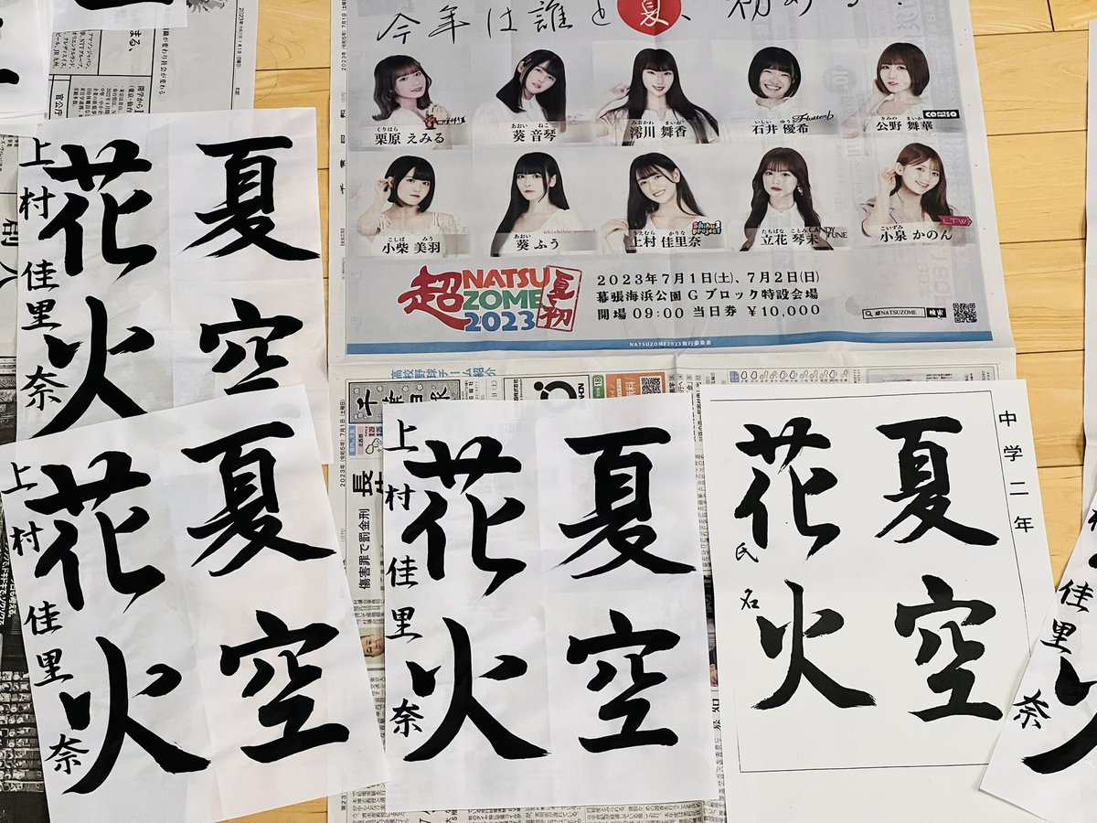 書いた半紙を置いていた新聞紙に