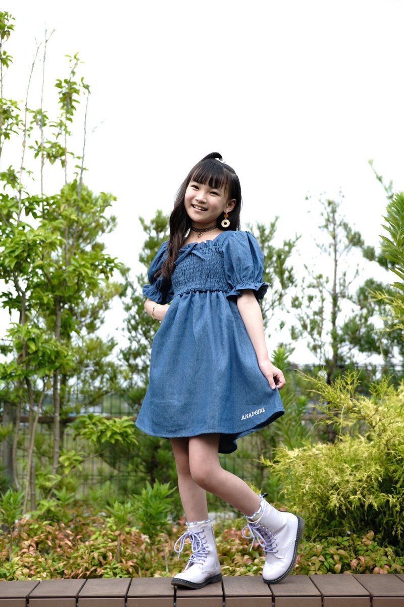デニム生地で着やすいしデザインも女の子っぽくてかわいい💕