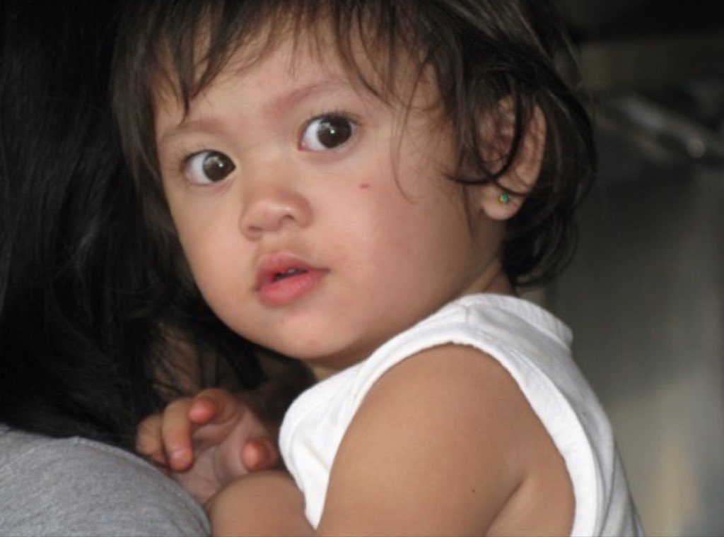 おだんごにして髪の毛の飾りつけたら赤ちゃんまんみたいになった〰️❕笑笑