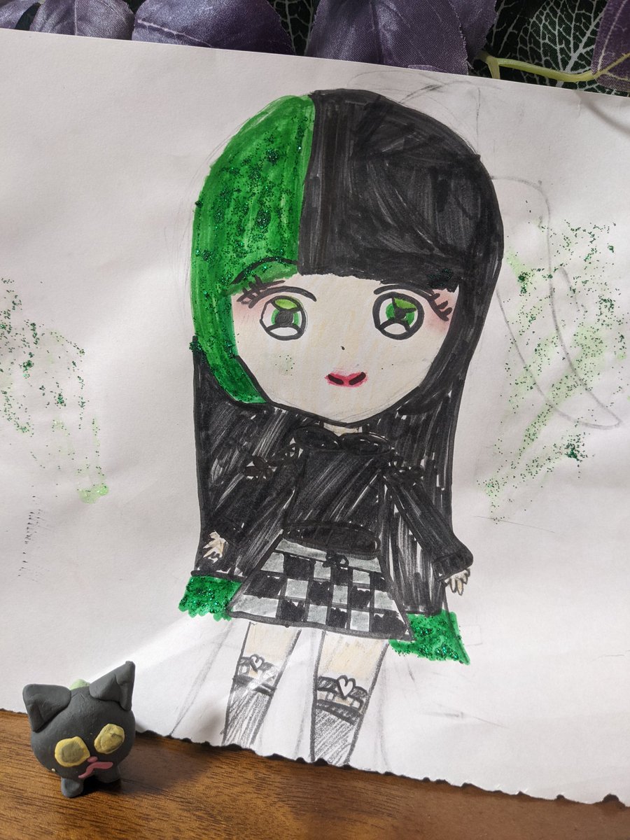 ゆら猫さん大好きセラ猫です💚🐈⬛🖤夏休みにゆら猫さんの絵かいたよ🖤🐈⬛💚 #ゆら猫 #ゆら猫さん大好き #セラ猫です #お絵描き #大好きな人たちの名前をツイートして何か反応があったら両想い #大好き #キラセラマカロン #小学生アイドル #JS4 #KIDS #9歳
