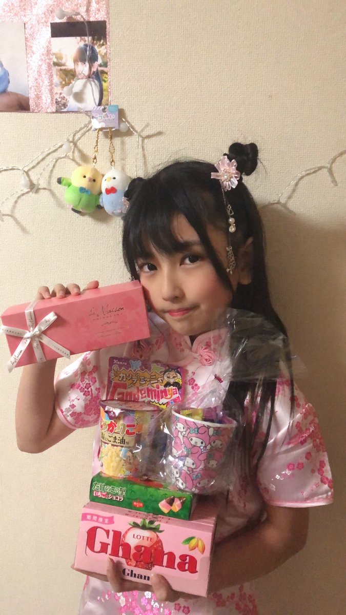宝来参上∠( ˙-˙ )/今日のライブ、物販、お菓子、差し入れありがとうございますm(*_ _)m嬉しいです♥️1公演目は、禰豆子ちゃん、2公演目は、チャイナでした!れなは、チャイナのピンクを着たよ! 明日ライブ行けない分今日頑張った!と思う。では、おやすみ♡みんないい夢見てね🦄💭💗
