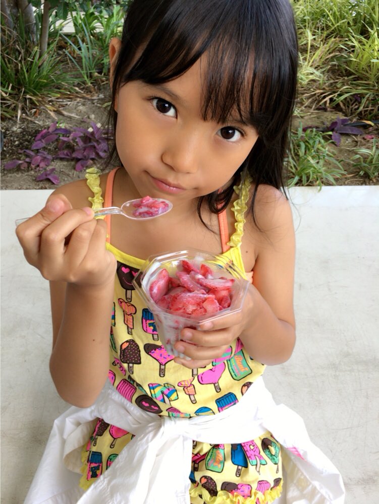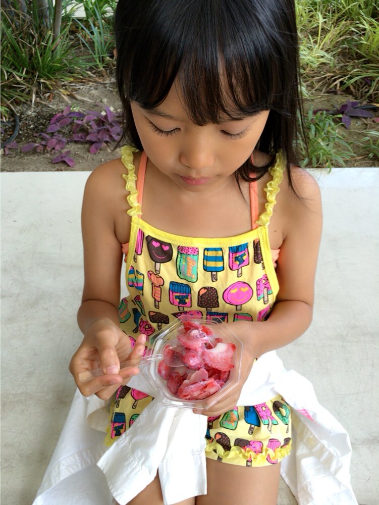 かき氷かとおもったら、ほんとにイチゴ🍓凍らせたのを削ってあるの😳