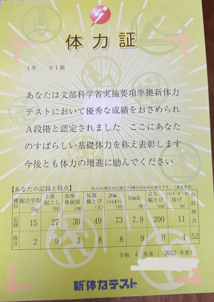 昨日、体力テストの結果が返ってきましたっ😆✨