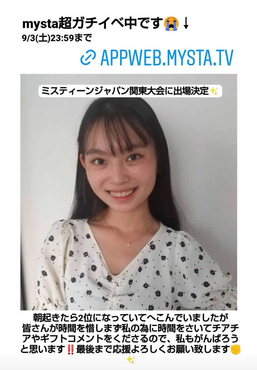 今日はmysta最終日のような気持ちになり(早い😂)、ファンの方々の温かい応援が身に染みた1日でした😭✨mystaデイリーランキング3位🎉(ToT) 本当にありがとうございます!