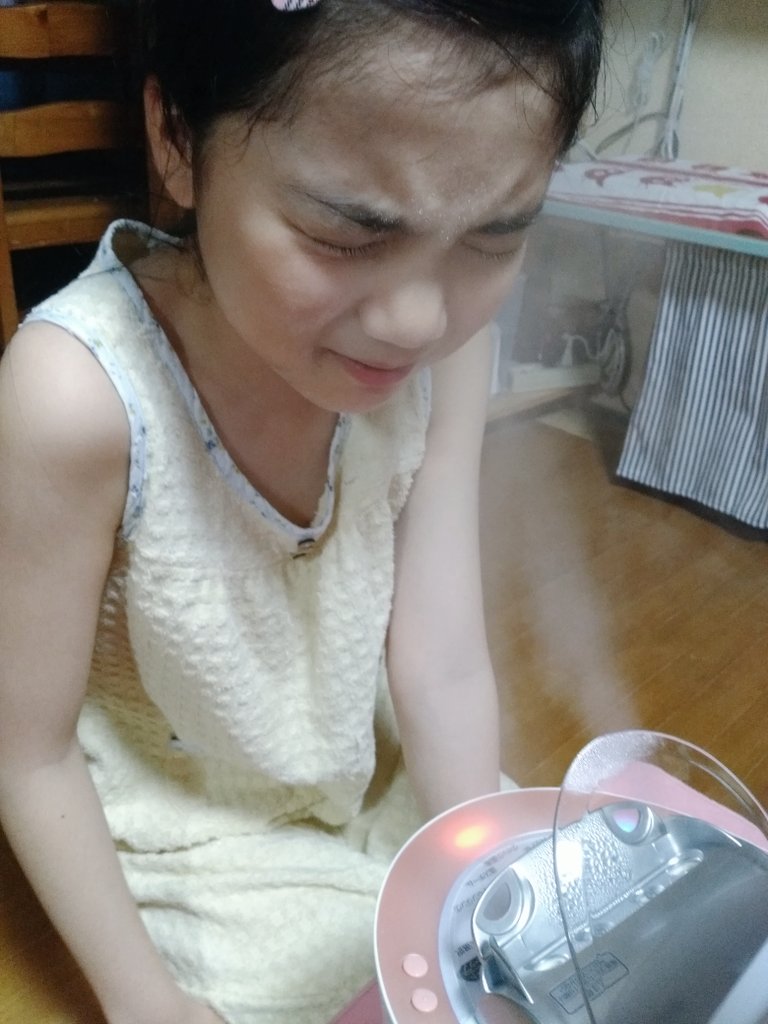 運動のあとは(運動したのはデグー)、琴ちんの美顔器をこっそり拝借。顔が、け、険しい...(;・∀・)
