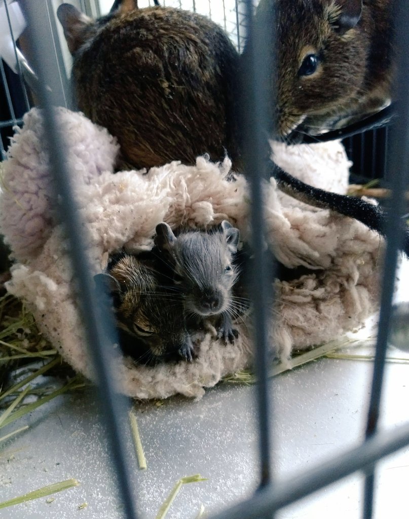 出産から1週間、赤ちゃんのお世話が大変なデグーたちを、運動させてリフレッシュ。