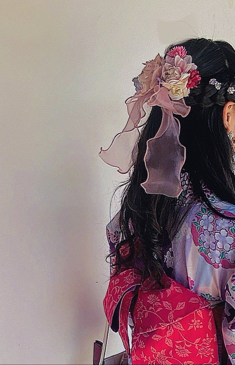 メイクしてもらって、かみの毛もかわいくしてもらって、きれいなお花をつけてもらったよ🥰