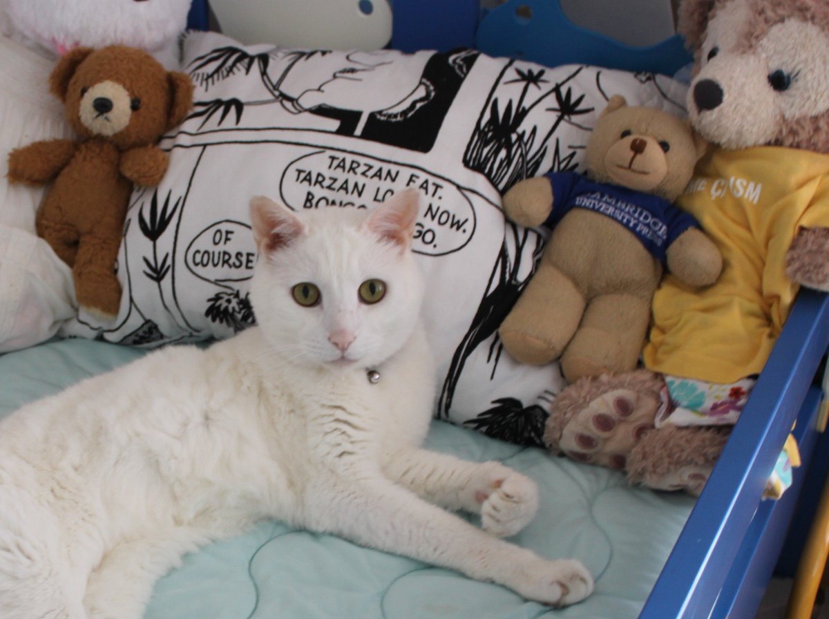 朝寝坊すると起こしてくれるし、ご飯を食べる時も、英語の課題をやってる時も隣でゴロゴロしてるの。実は私よりも年上なのよ!