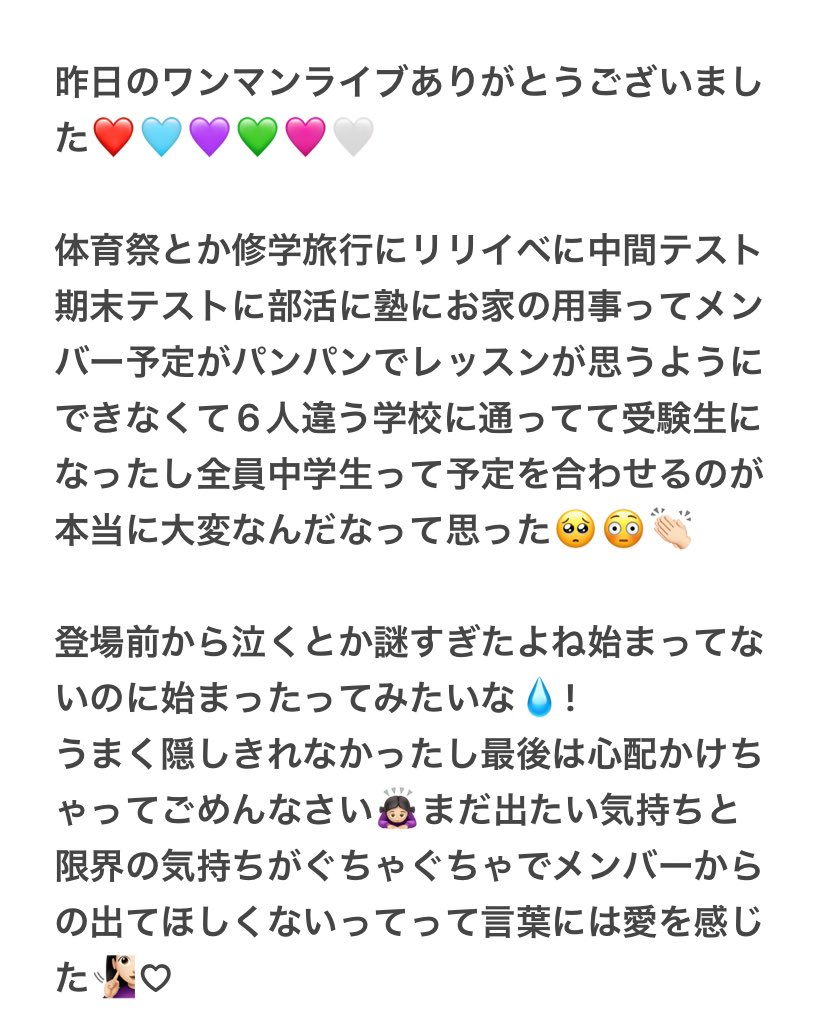 ワンマンライブありがとうございました❤️🩵💜💚🩷🤍無事にお家に着きました➰👻全然頭が回ってないから明日改めてポストするね➰🤟🏻