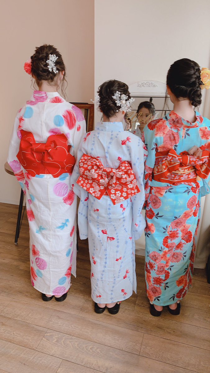 おはさなぁ🤗💜🎀✨ゆかたのお写真見たいって言ってくれてありがとう😍さなあんれいでみんな赤いおび❤️すごーいってなったけど、ゆりあちゃんとひなりちゃん以外みんな赤い感じだった🤣❣️