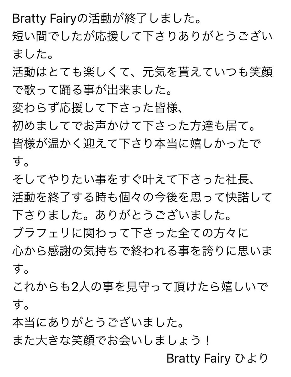 短い期間でしたが、BrattyFairyとして活動できたこと本当に楽しかったです!
