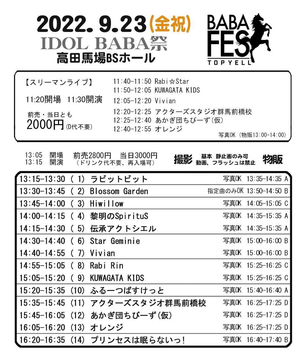 1部はツーマンで11:30~高田馬場BSホールでお待ちしてます💚