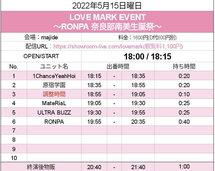 20:20〜物販なのでぜひ来てください待ってまーす‼️