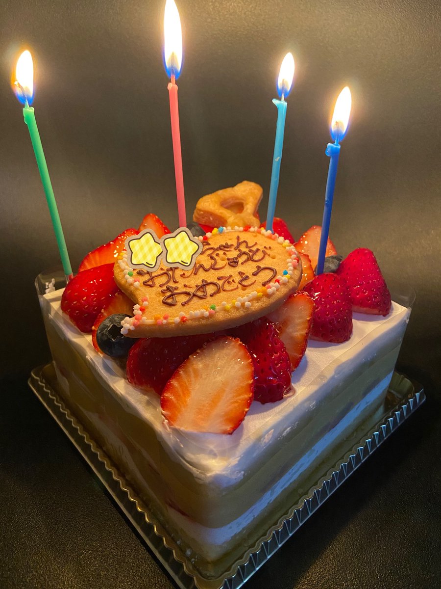 明日はママ子のお誕生日🎂明日は家族揃わないから今日ケーキ食べたよ🎂40歳なのに4才の設定で買った来たパパ子🤣
