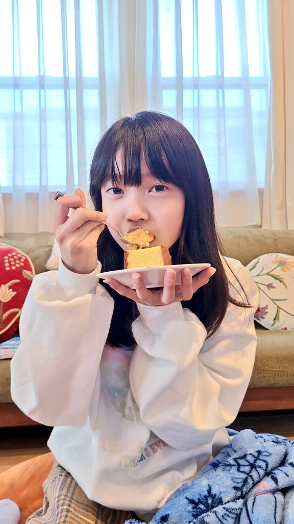 ただいまぁ🎀 おやつはカステラ♡ きょうはボイトレ3時間‼️ 昨日もボイトレだったよ🎀 ふりかえがたまりまくってるから今月ボイトレがんばる(՞˶・֊・˶՞)🤍 通いきれないから今月でやめるの(т т)しかたないよね〜😿