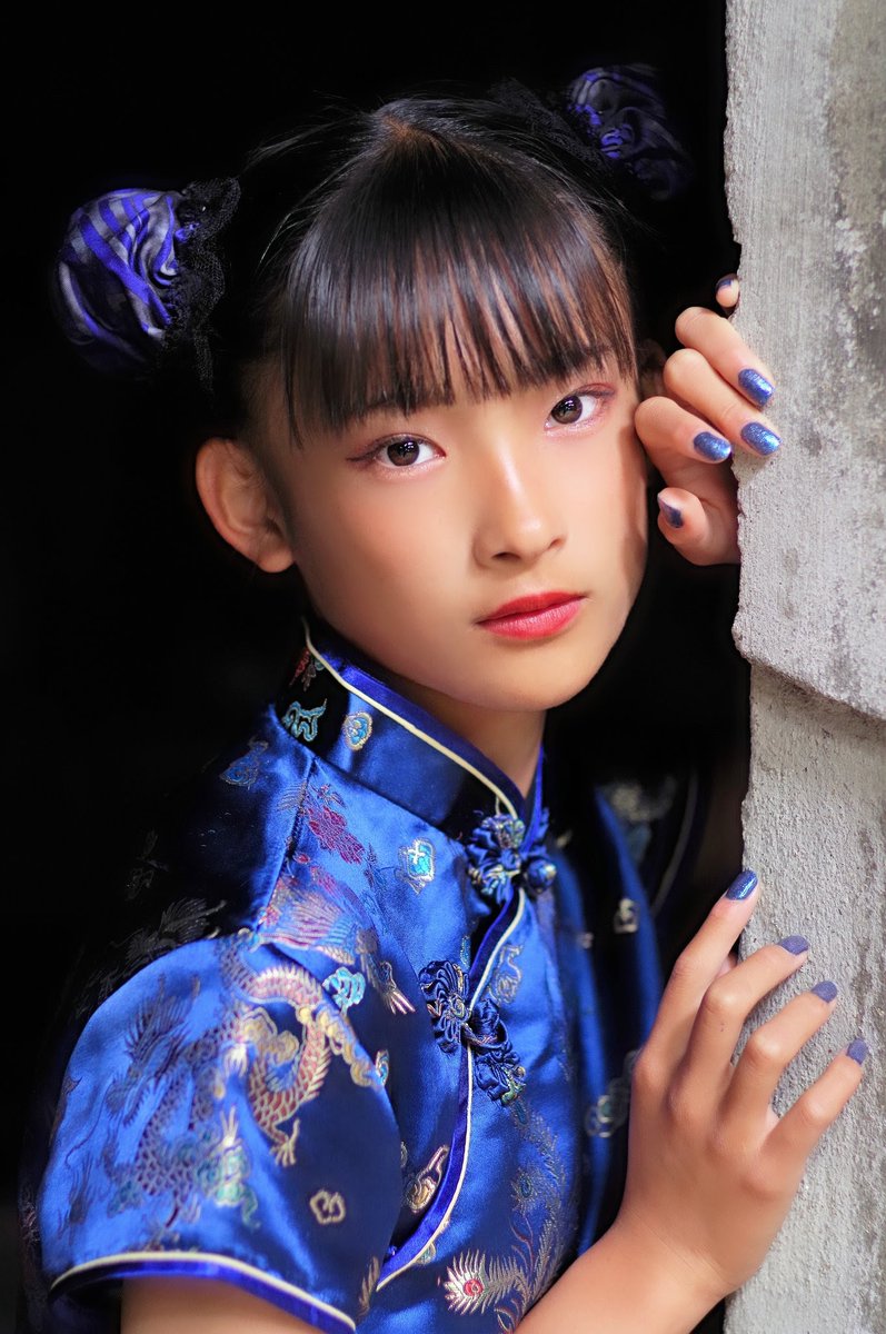 おはようございます!さあやはいつもファンデとチークはせずアイメイクだけなんですがこのお写真チークしてるみたい🤭焼けてるだけなのか??青チャイナをクールに撮って頂きました😊