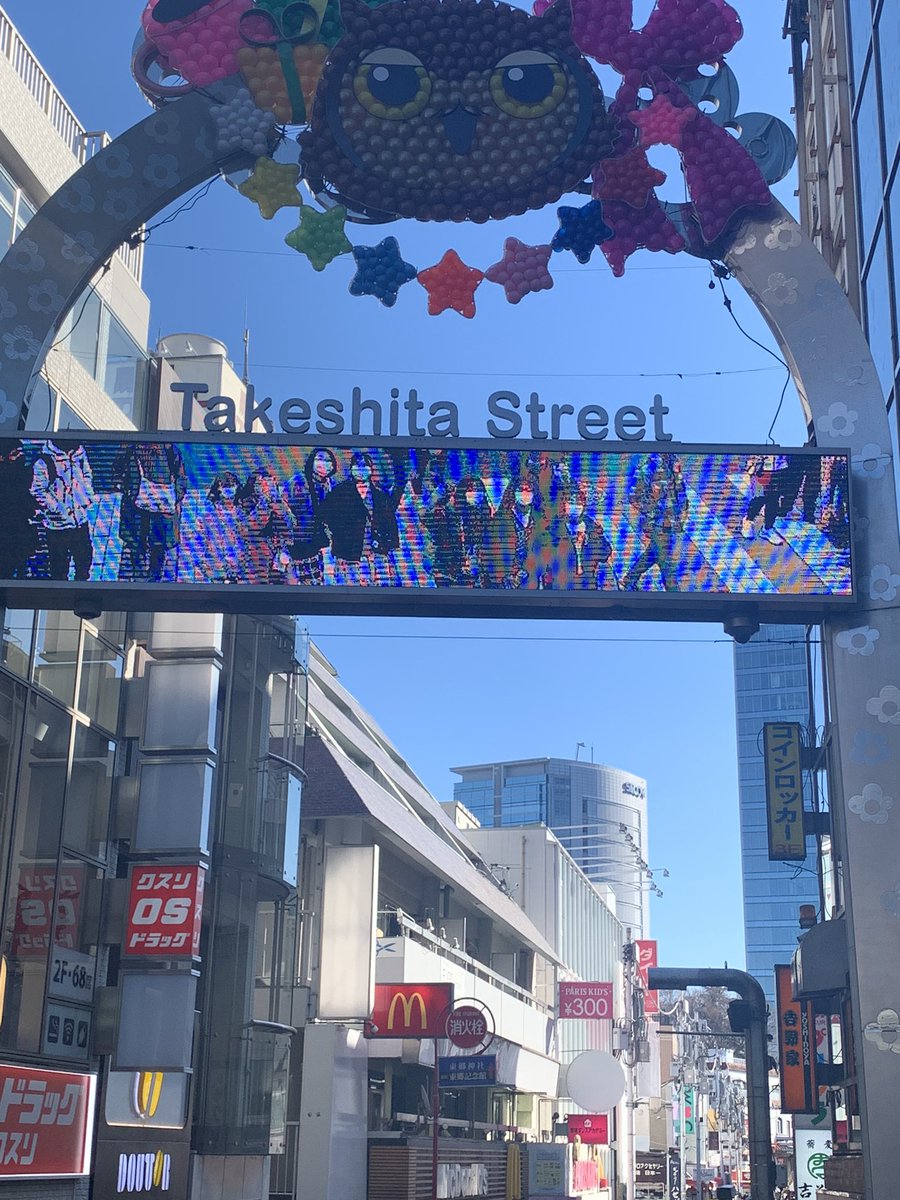 ようこそ原宿学園です!が原宿竹下通りに約2週間流れることになりました🥲🫶🤍嬉しすぎる(;_;)みんな予約したらいいことはこれの事でしたみんなのおかげですほんとにありがとうだいすき😭