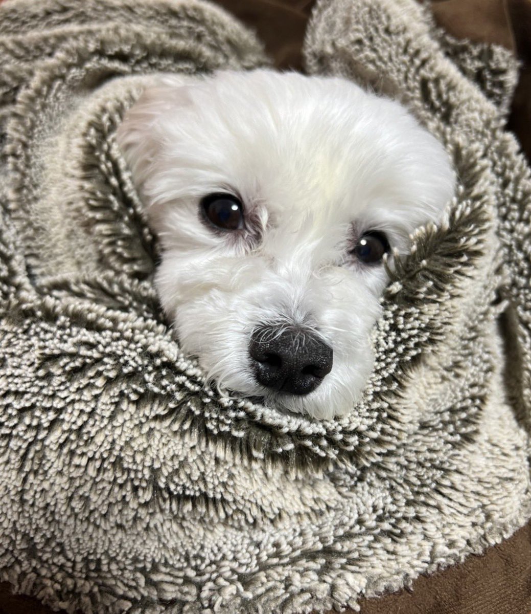家では白いもふもふバービーが毛布に包まってました☺️まだ寒いからね〜